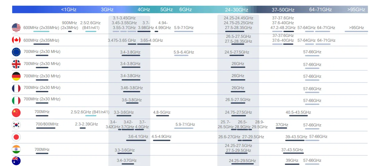 5G NR이 포함된 주파수 대역의 예상 변화(이미지 출처 | 에릭슨)