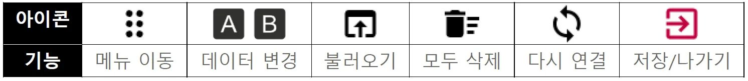 저장/나가기 : 매핑 데이터를 저장하고 게임 화면으로 돌아갑니다.
