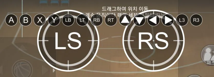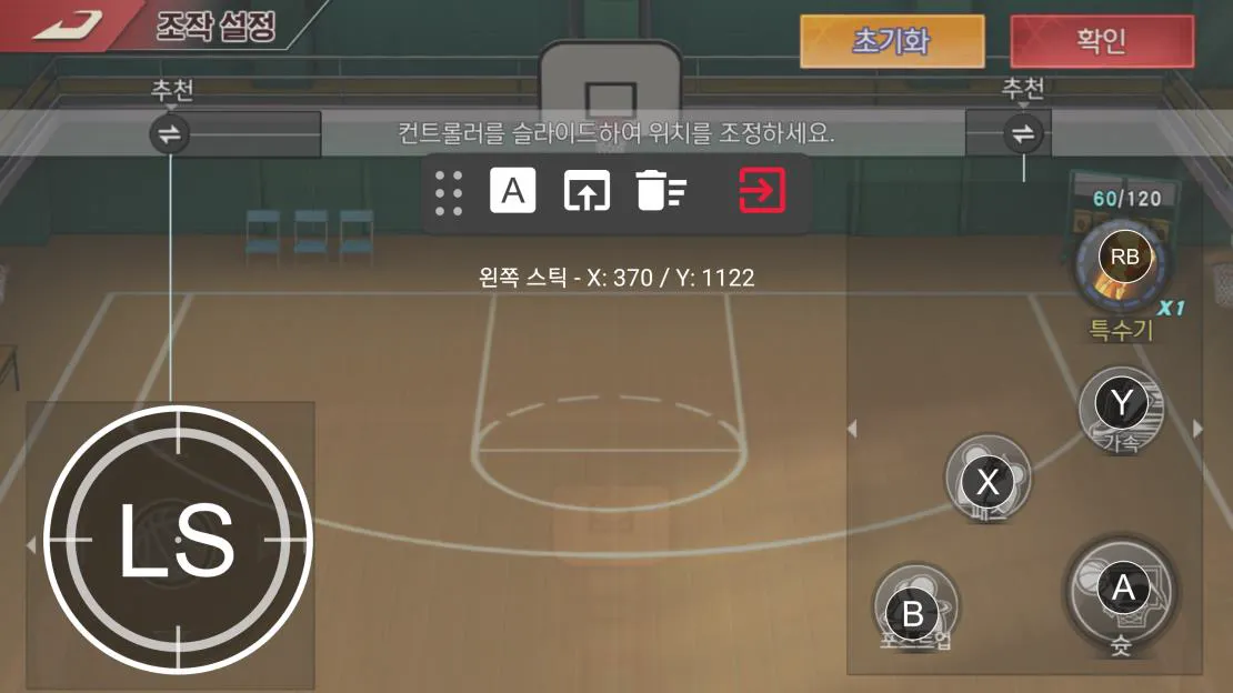 모바일 슬램덩크: 메인 화면에서 톱니바퀴 아이콘 → 조작 설정 → 커스텀 설정