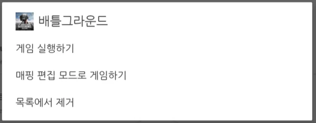 가장 위 게임 실행하기를 누르면 아이콘 없이 실행할 수 있다.