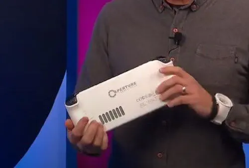 During the entire Steam Deck presentation, the backgrounds were filled with intriguing hints at Valve’s prototyping process, and many onlookers noticed a white Steam Deck among them — one straight out of Valve’s hit game Portal right down to the Aperture logo around back.