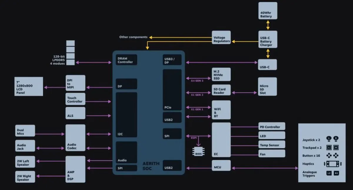 Here’s the Steam Deck’s entire block diagram, so you can see how the whole system comes together around that chip: