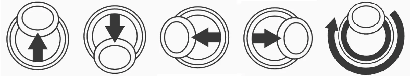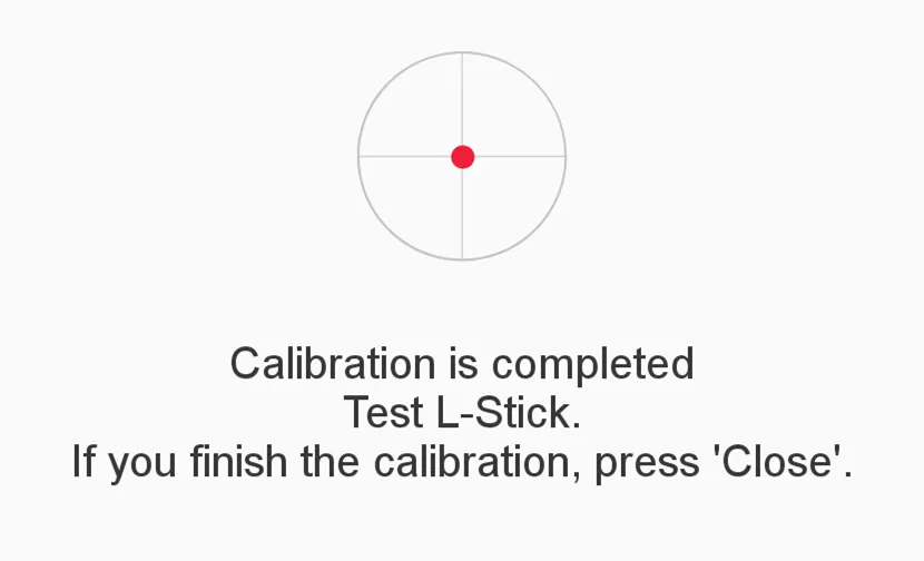 Mueve el stick hacia cada dirección y espera hasta que se complete. Arriba→ abajo→ izquierda→ derecha dirección por turno.