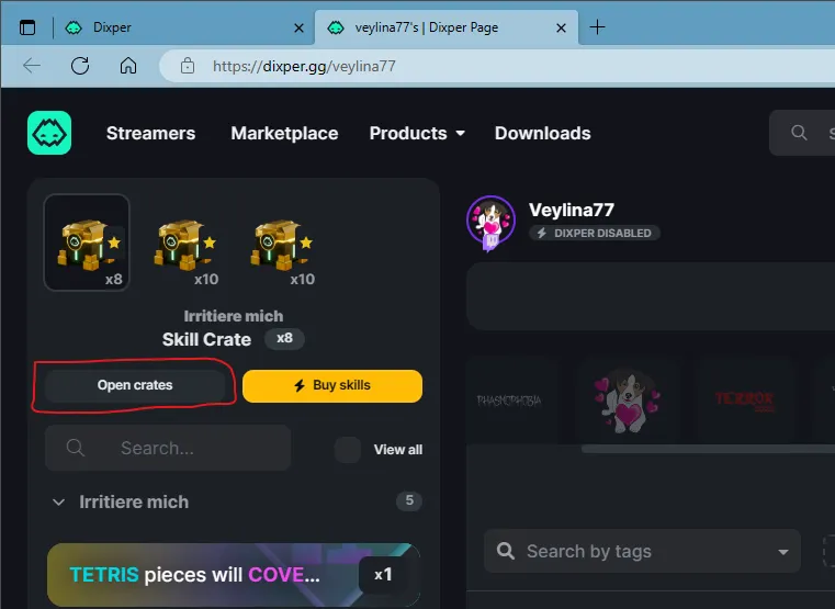 Open crates๋ฅผ ๋๋ฅด๋ฉด ์คํฌ์ ๋ฐ์ ์ ์์ต๋๋ค.